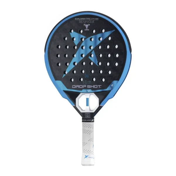 La Drop Shot Explorer Pro Attack 2024 marca una evolución destacada dentro de la icónica gama Explorer, renovándose con mejoras técnicas importantes y un diseño moderno y llamativo. Este modelo, ajustado a las necesidades del profesional Lucas Campagnolo, mantiene su esencia original: formato redondo, punto dulce centrado y balance bajo, características que garantizan control máximo y una jugabilidad estable y equilibrada.